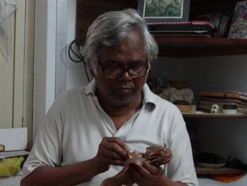 Ajoy Das is a well-known name in Kolkata’s art world who is equally adept in painting and sculpture. His recent sculptures in bronze medium, have been highly acclaimed by connoisseur and the famous painter Ganesh Haloi (1936-) is one of them. In painting, his favourite media are watercolour and oil painting. In the field of painting his teachers Ganesh Haloi and Satyen Ghoshalare his sources of inspiration. In sculpting, Debi Prasad Roychoudhury(1899-1975) and Rodin(1840-1917). This devotee of art keeps very low profile, staying close to the studio and far from the limelight, believes his work is his identity.