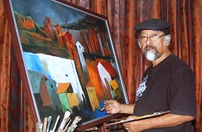 Over the years he gradually moved from his atmospheric landscapes to representations of the human form. His more recent paintings are bold and have graphic quality